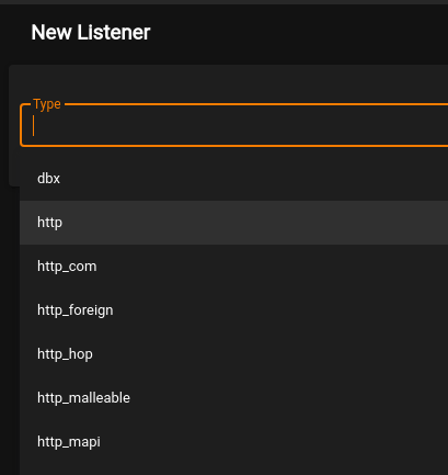 From the Listeners page, we just click Create and are taken to a new screen to choose the type of listener to use. In this case I’m going to choose ‘http’, but there are a variety that can be used for different situations.