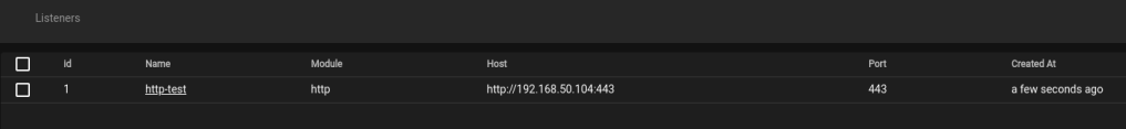 Once finished and started, we can see it is listening on the Listeners panel.
