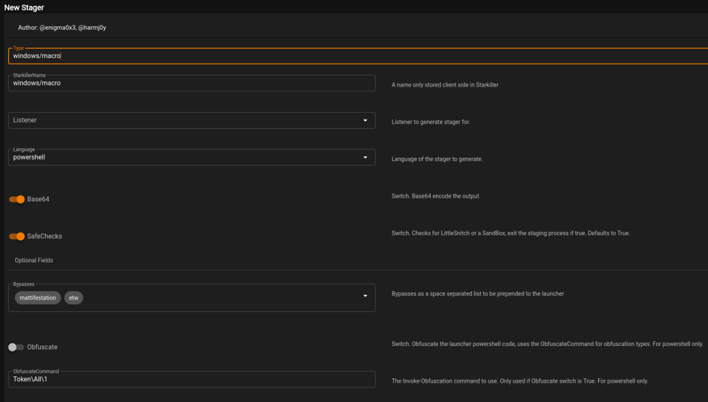 Once selected, we’re given a new screen to configure how the stager’s payload is generated.