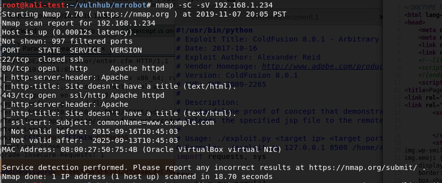 The initial nmap scan shows 3 ports open: HTTP on port 80 and the standard Windows RPC on 135/49154.